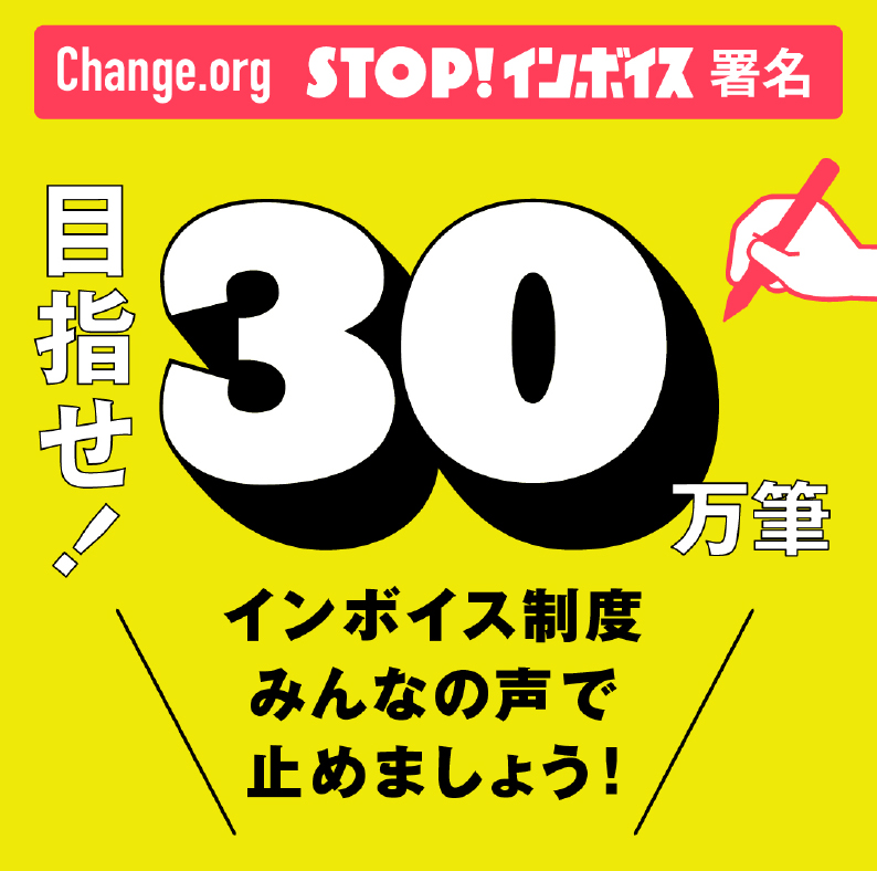 オンライン署名「《#STOPインボイス》多様な働き方とカルチャーを衰退させるインボイス制度に抗議します」を、“STOPインボイスできるまで”実施しています。