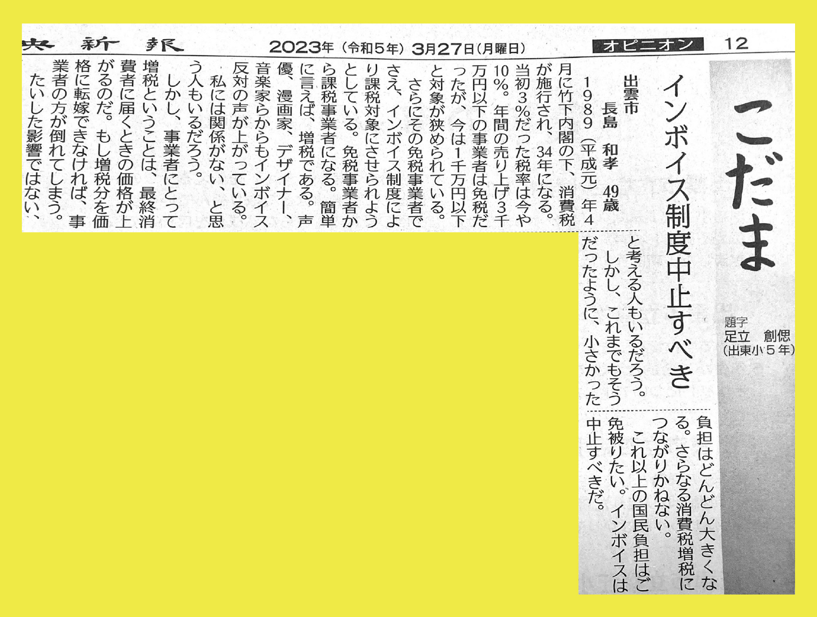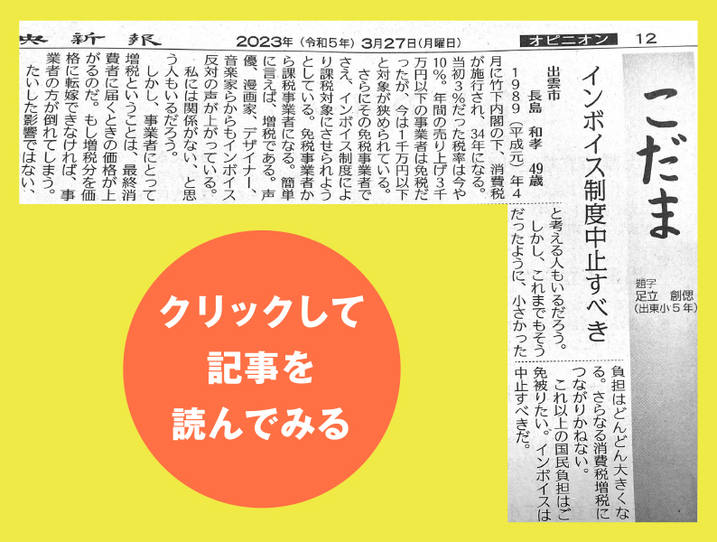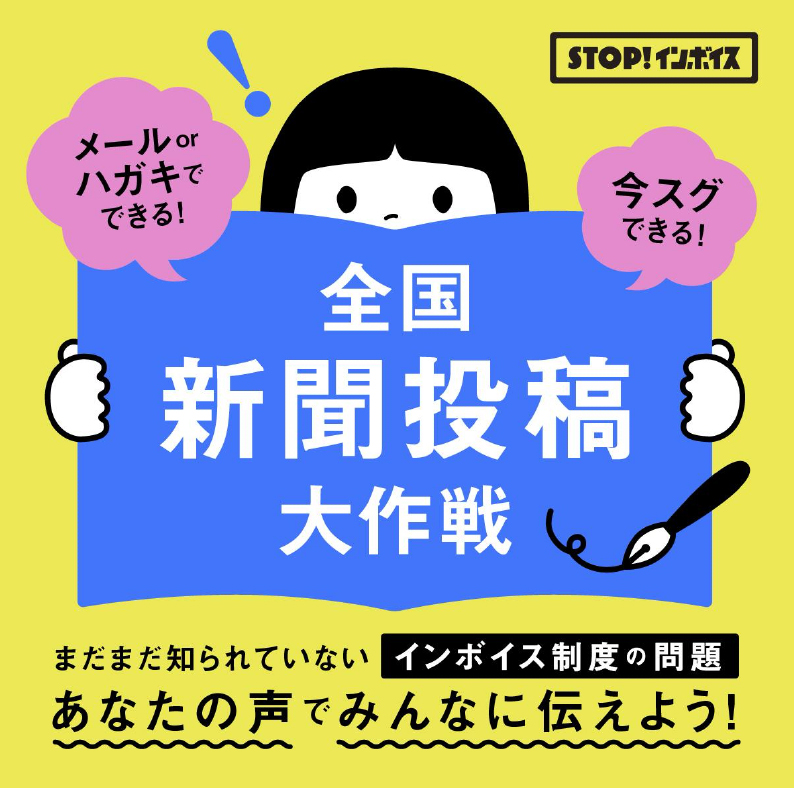 メディアになかなか取り上げられないインボイス制度。 特にネットの情報が届かない方には全く知られていない可能性大。ならばみんなで地元新聞の投稿欄に声を送り、インボイス問題を広めよう!